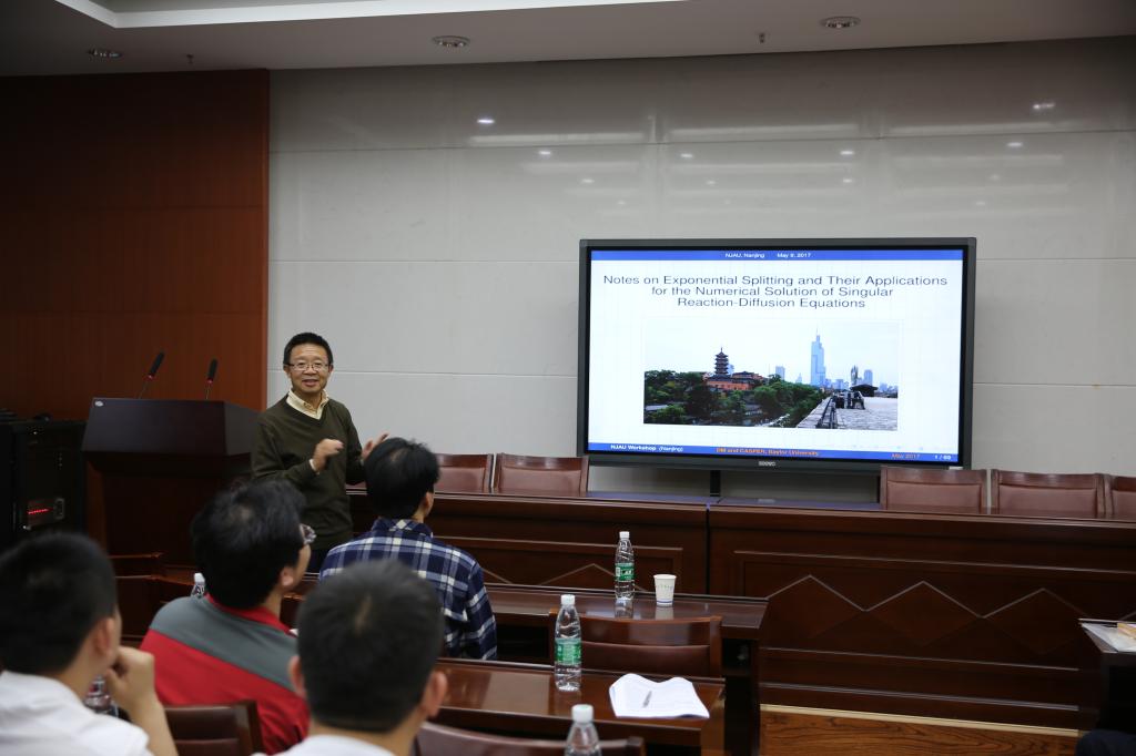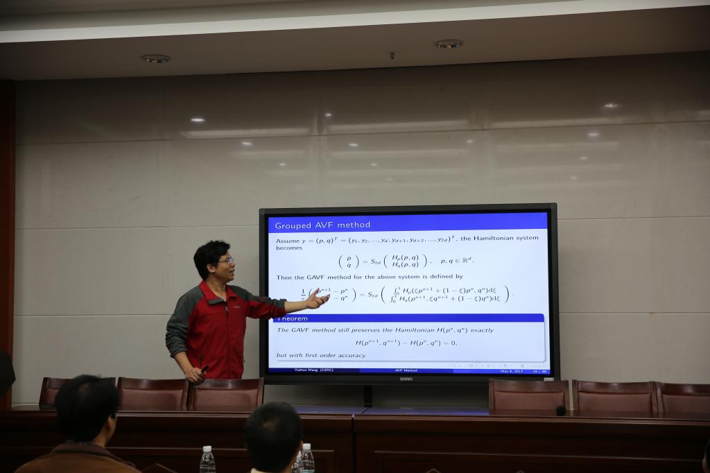 2017年5月9日,巴黎人赌场 报告厅成功举办了“微分方程保结构算法及应用”的专题报告会。本次报告的主题为微分方程保结构算法及应用,具体涉及指数分裂法与奇异反应扩散方程的数值解法,分数阶扩散方程的有限差分方法,平均向量场方法,算子常数变异公式及其应用等。应巴黎人赌场 游雄教授邀请,美国Baylor大学盛秦教授,东南大学孙志忠教授,南京师范大学王雨顺教授,南京大学吴新元教授莅临我校访问交流,参加报告会的有巴黎人赌场 、东南大学、山东曲阜师范大学的师生20多名。报告期间各位教授与师生们热烈互动,耐心地解答师生们的提问,与会师生普遍感到收获很大。学院领导对此次国际交流活动高度重视,并给予了大力支持。