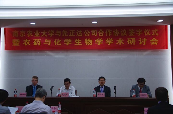 院长章维华教授和Mike Lant博士分别代表江苏省农药学重点实验室和先正达公司在合作协议上签字。