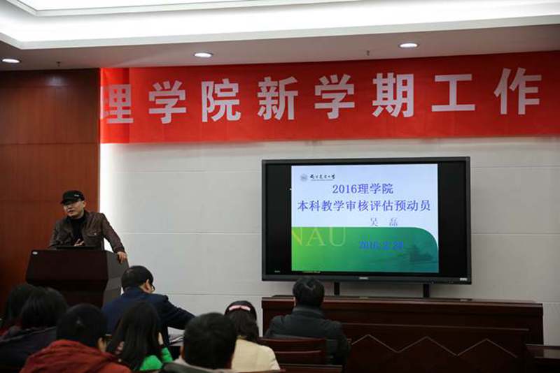 本科教学审核评估预动员》的报告。从审核评估的重要性、内涵要求、扎实推进教学建设与教育改革、全力做好迎评工作部署等四个方面对即将到来的本科教学评估工作作了全面动员,要求全员树立高度责任心,迎接评估。