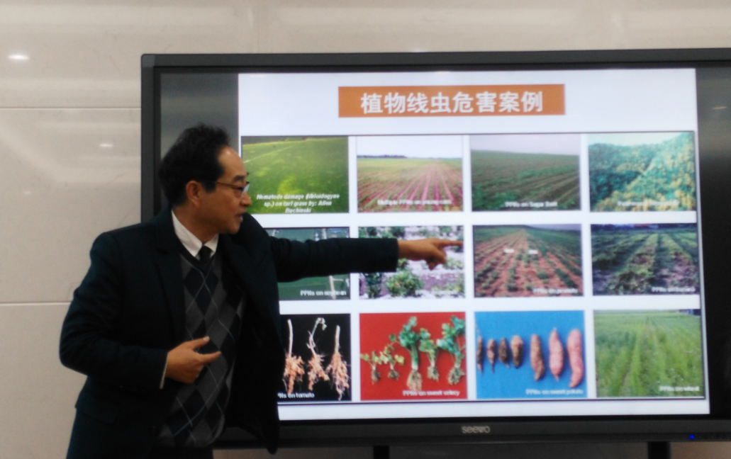 报告中,高丙利教授针对当前线虫对农业生产中产生的危害进行了介绍,指出业界和农民对线虫危害意识的不足,接下来高教授介绍了杀线虫剂的发展历史和研究动态,包括线虫的生命历程和危害作用过程,最新的生物基因和药物研究进展。并对中科院上海生命科学院湖州现代农业生物技术创新中心的研究工作进行了简单介绍。