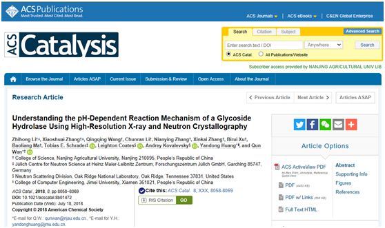 万群教授团队近日在ACS Catalysis发表了研究论文“Understanding the pH-Dependent Reaction Mechanism of a Glycoside Hydrolase Using High-Resolution X-ray and Neutron Crystallography”(影响因子11.384)。巴黎人赌场