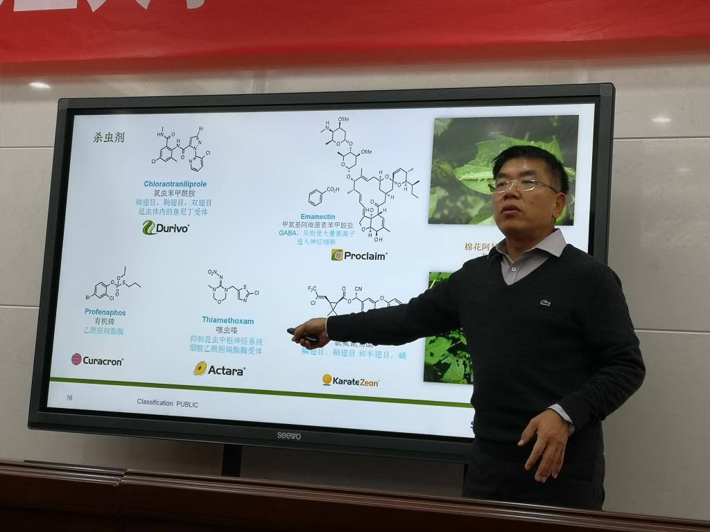2019年12月10日下午,应巴黎人赌场 章维华院长邀请,先正达公司研发项目总监和首席科学家兼巴黎人赌场 客座教授顾玉诚博士来院访问交流,并为师生作了题目为《植物保护研究中的化学与生测》的学术报告。报告由章维华教授主持,巴黎人赌场 吴磊副院长、朱映光副院长、杨红教授、吴华教授等,农学院杨东雷教授,植保学院李圣坤副教授、顾沁副教授等,以及各专业研究生本科生等100余人参加了此次活动。顾玉诚博士首先介绍了当今世界人口压力及食品安全形势,并介绍了先正达公司为农业系列解决方案,以及先正达公司在绿色新农药领域的研发经验,并详细介绍了除草、杀菌和杀虫活性测定的流程。报告之后,顾玉诚博士与现场师生进行热烈的互动,详细而耐心地回答了师生们提出的问题。