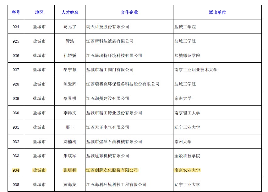年江苏省科技副总项目拟入选对象公示,巴黎人赌场 张明智副教授与合作企业江苏剑牌农化股份有限公司联合申报的科技副总项目入选。