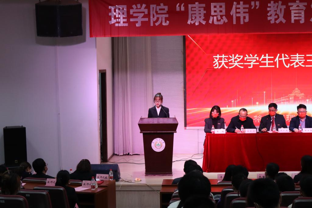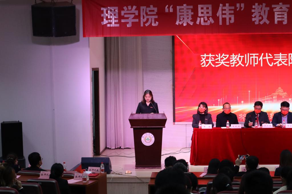 会议第四项议程为获奖教师代表陶亚奇发言,她认为,康思伟奖教金的获得,带给她的不仅是物质上的奖金,更是一种精神财富,这是对她付出努力的一种肯定,让她更加懂得了一分耕耘一分收获的道理,同时使她获得了前进道路上的动力。