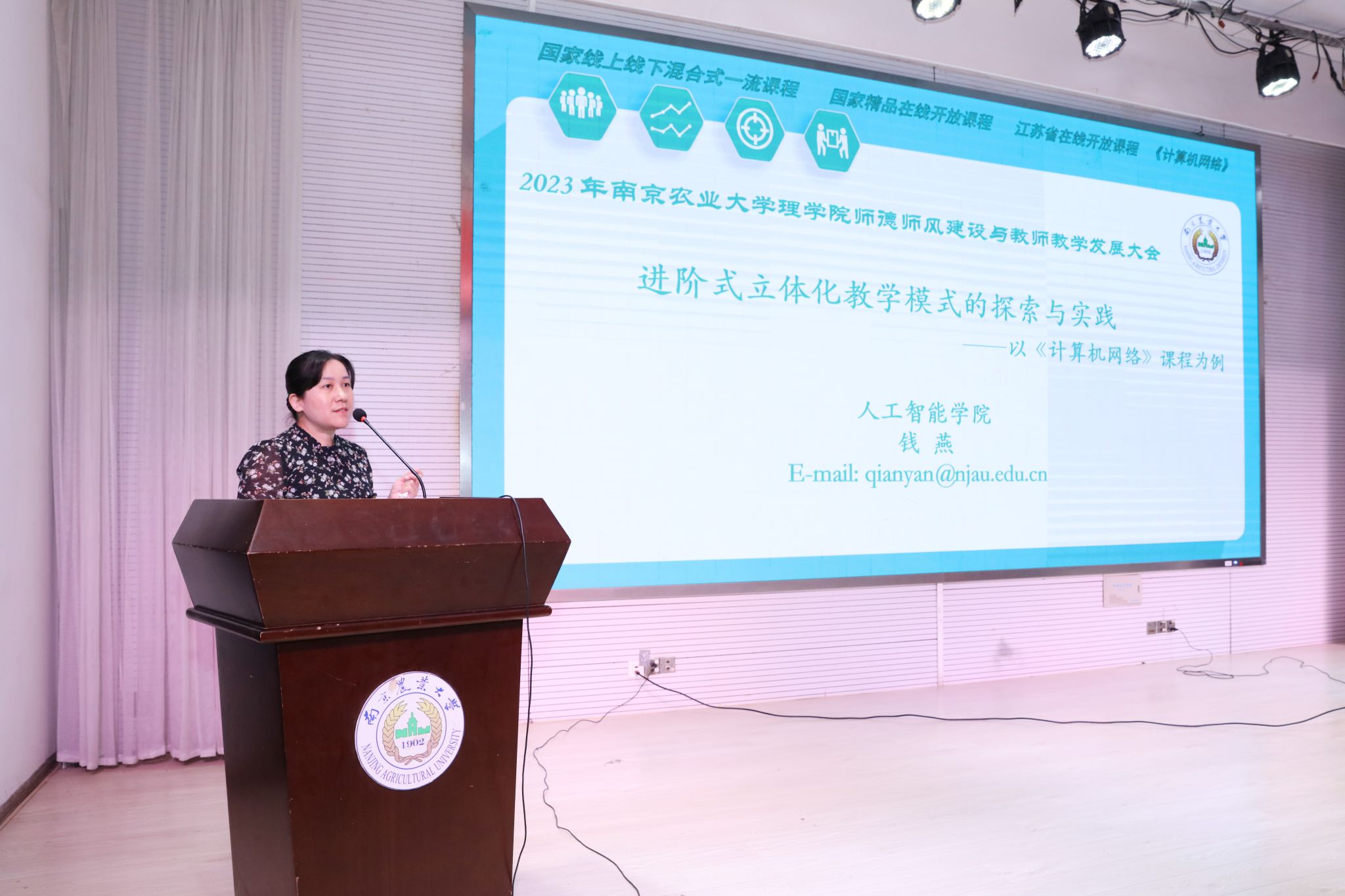 钱燕以《计算机网络》课程为例,作了《进阶式立体化教学模式的探索与实践》的主题报告,报告深入解读了教育部关于本科课程建设的相关政策,并通过教学实例,直观的向大家展示了《计算机网络》课程教学实施过程,以及课程在建设过程中做出的改革与创新。