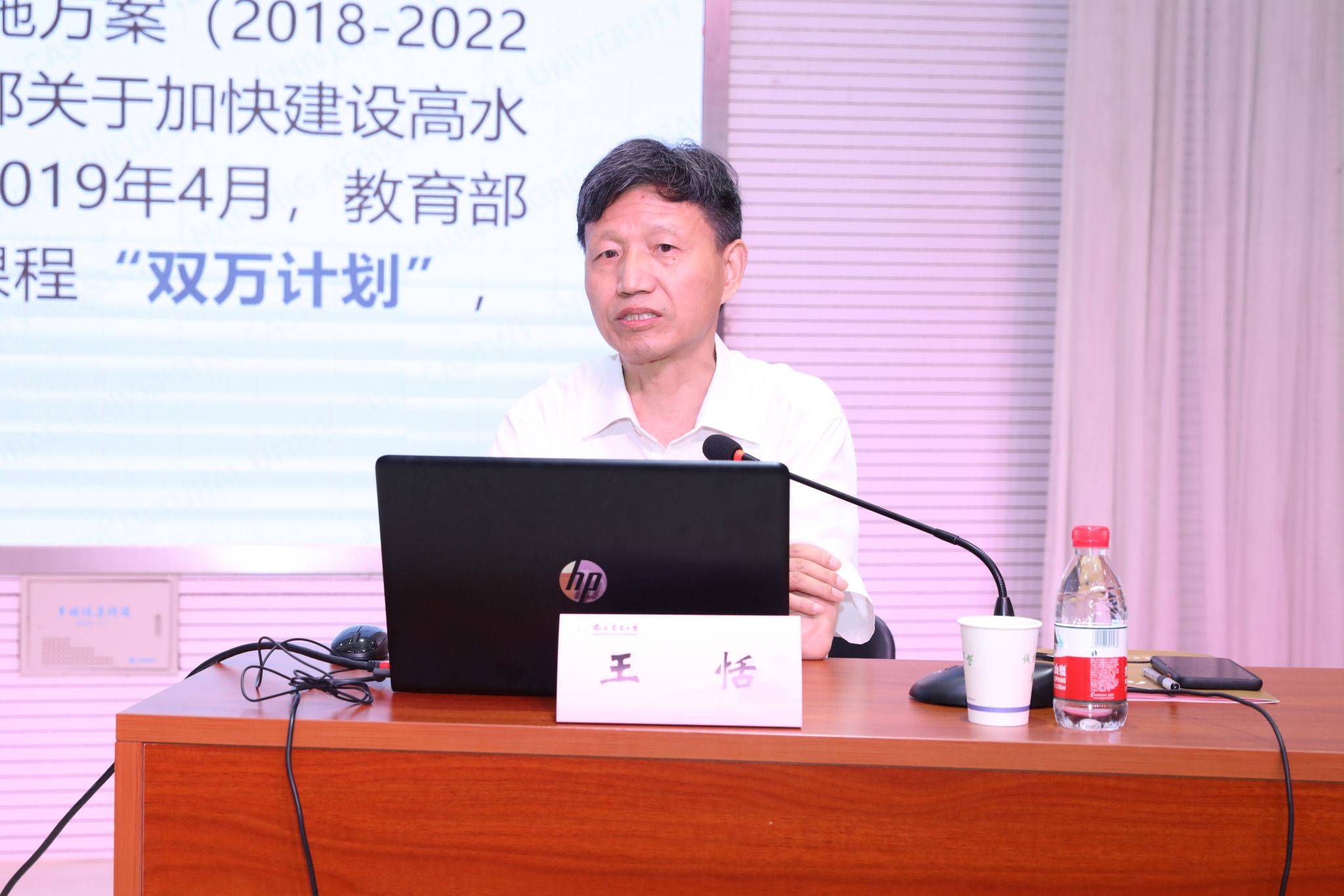 公共基础课教学工作给予肯定,并做了题为《坚守教育初心,潜心教书育人》的主题报告。他从“双一流”建设与“双万计划”切入主题,讲述了建设一流大学和一流学科的重要内容,并分享了他在课程建设与课堂教学中的宝贵经验。他指出,教师要把做好教书育人工作视为对国家、对社会、对学生和对家长的尽责,在奉献教育事业与促进学生成长中,实现自我价值。