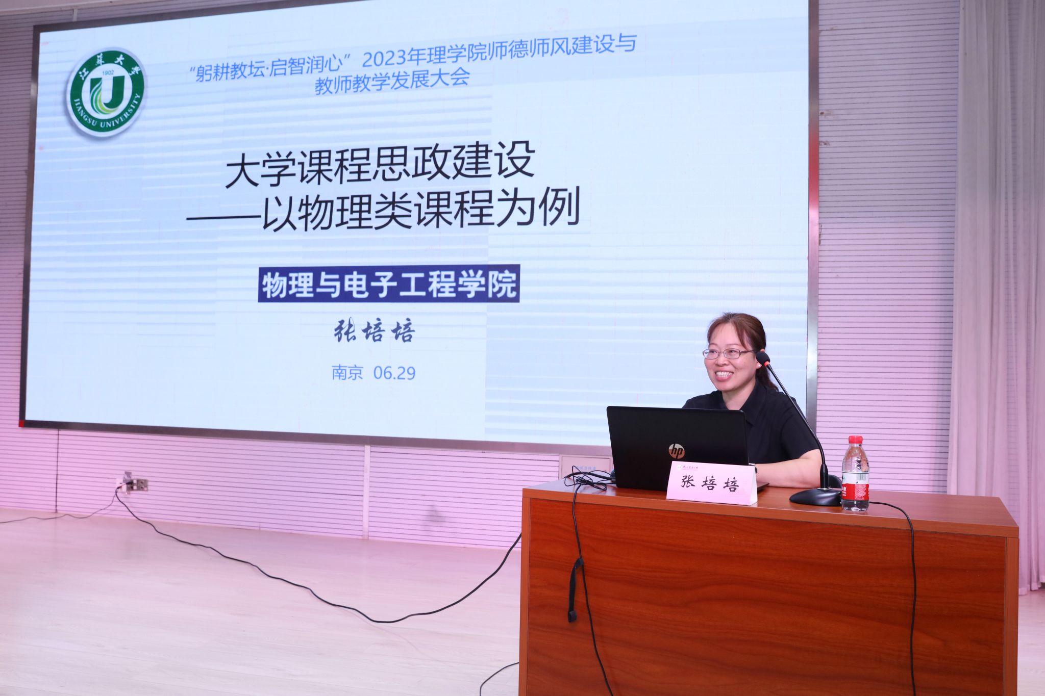 张培培作了题为《大学课程思政建设—以物理类课程为例》的主题报告,报告从“课程思政1.0到3.0”“全方位、多角度推动一流课程建设”“加强平台建设,促进同行间交流”三个方面展开,详细讲述了如何高质量建设物理类课程思政的过程和取得的阶段性成绩。