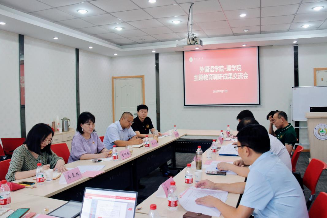 在教学楼A310联合组织召开了两院领导班子主题教育调查研究成果交流会。两院班子成员和相关工作人员出席了会议,会议由外国语学院党委书记董红梅主持。