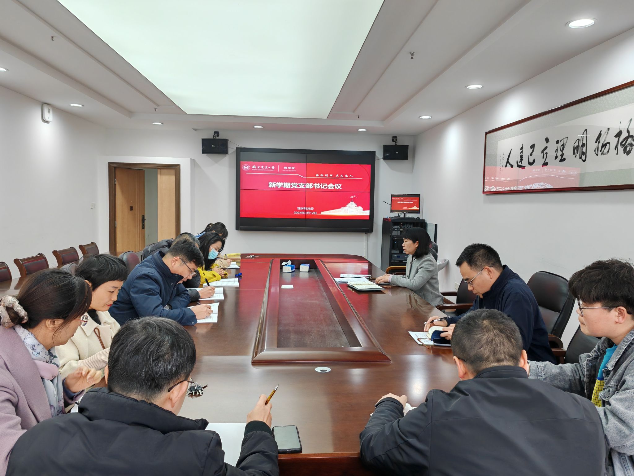 第十二届委员会第十六次全体(扩大)会议精神。今年是学校发展历史上至关重要的一年,各基层党支部要引领广大党员干部和群众,进一步提高政治站位,持续加强理论学习,聚焦学院重点工作和学科特色开展党建与业务融促,充分发挥基层党支部的战斗堡垒作用,用高质量党建引领学院各项工作高质量发展,凝心聚力为学校建设世界一流农业大学贡献理学新力量。