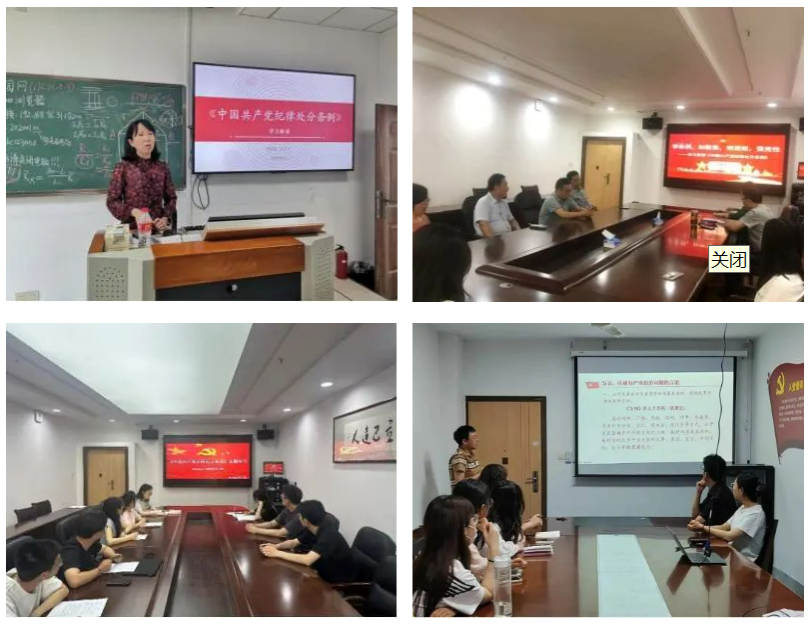 各党支部积极响应,做到全面覆盖。各师生党支部结合学校“学条例 守党纪 强党性”主题党日活动要求,纷纷开展领学、研学、研讨、微党课、警示教育等多形式的学习教育。物理教师党支部邀请联系院领导吴彦宁副书记(主持工作)为支部全体党员上纪律党课,化学教师第一、第二党支部采用《条例》学习和视频学习相结合的方式,推进党纪学习教育落到实处,数理研究生党支部书记及支委先学、领学,并组织党员分享与研学互动,促进学习教育有广度有深度。