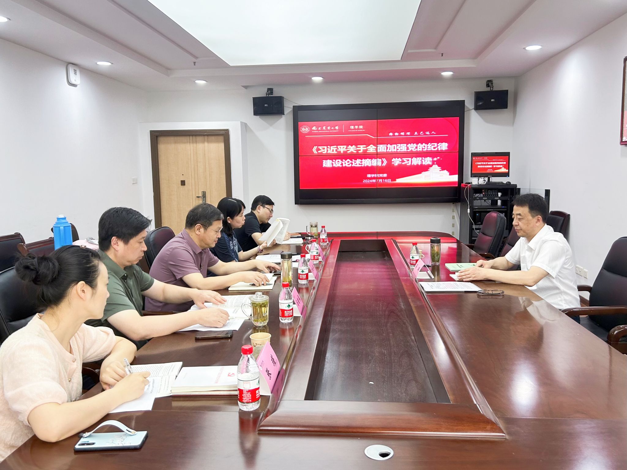 党委理论学习中心组召开党纪教育学习研讨会,集中开展对《习近平总书记关于加强党的纪律建设论述摘编》(以下简称《摘编》)的学习交流,校党委常委吴群列席并进行指导,院领导班子全体成员参会。会议由学院党委书记吴彦宁主持。