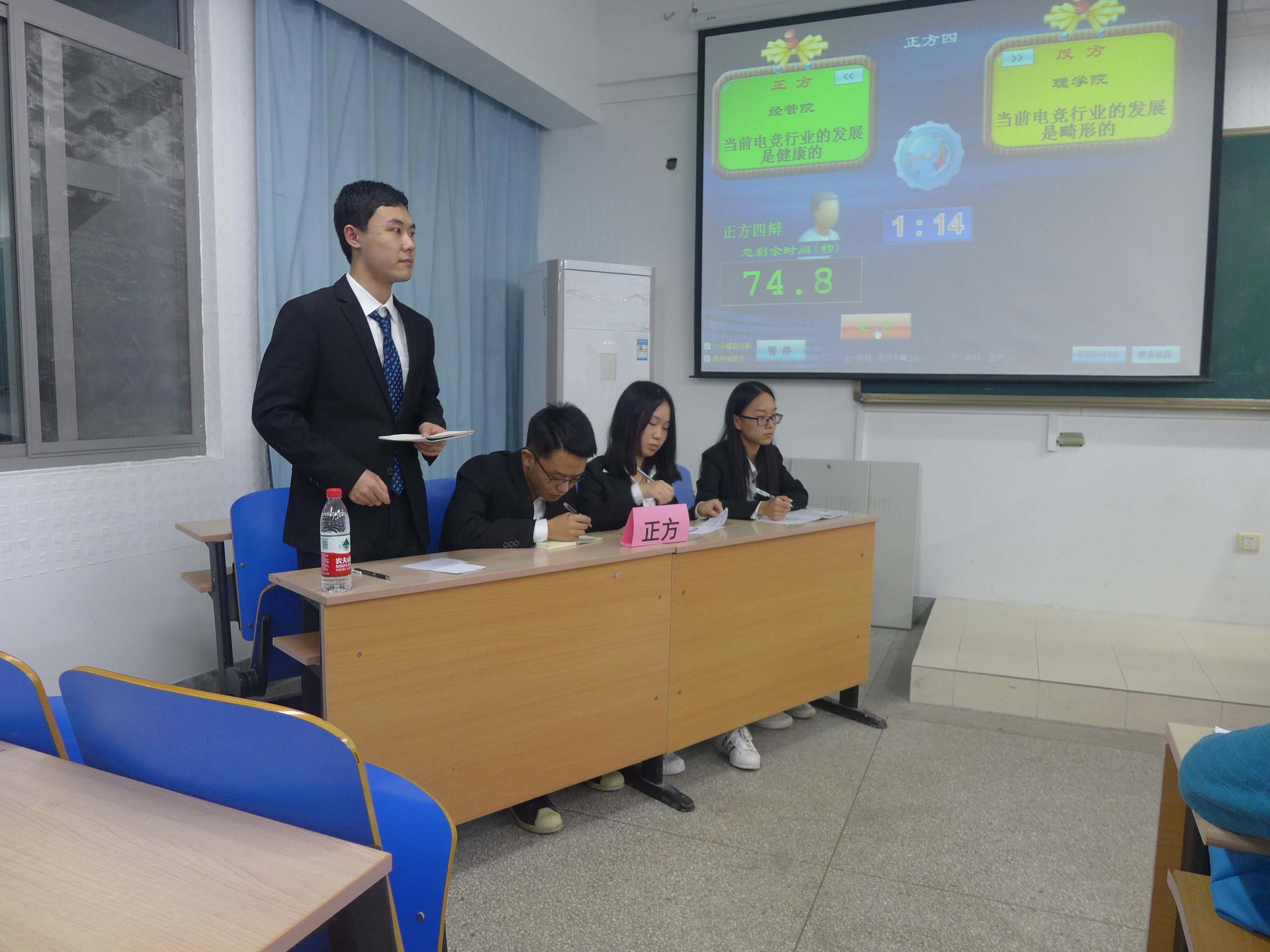与经管院、植保院小循环辩论赛,两组成员围绕“当今电竞行业的发展是健康或畸形的”辩题展开激烈讨论。评委除了本校的几位优秀辩手,还特地邀请了南理、南财的资深辩论人为比赛点评。