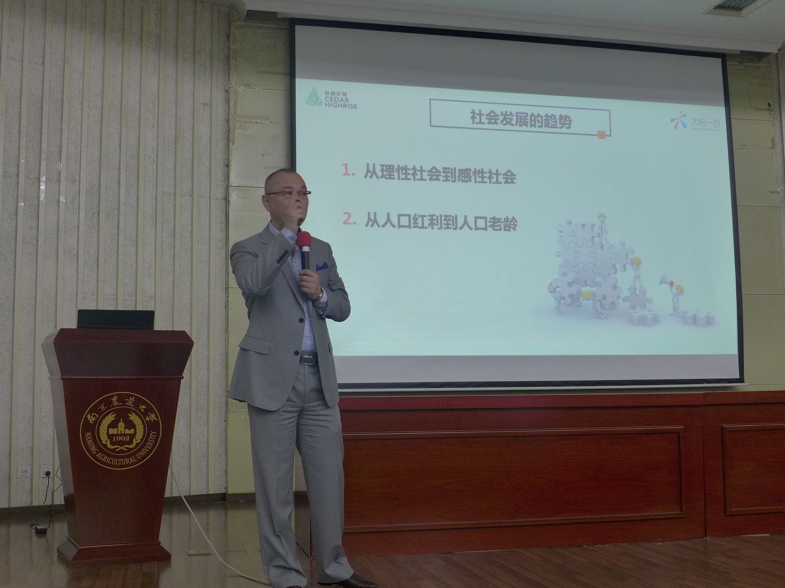 接着,姜爷顺势抛出了择业的“三维度思考法”,即天时、地利、人和。天时,即就业需综合考虑国家,社会和经济的发展趋势;地利,则是选择自己喜欢的地域;人和,就是自身的能力。然后,演讲者提出择业者不能轻易说“no”。很多事情并不是择业这能力不够,而是对自我的否定导致了事情的失败。诚如马云所说:“梦想还是要有的,万一实现了呢?”。