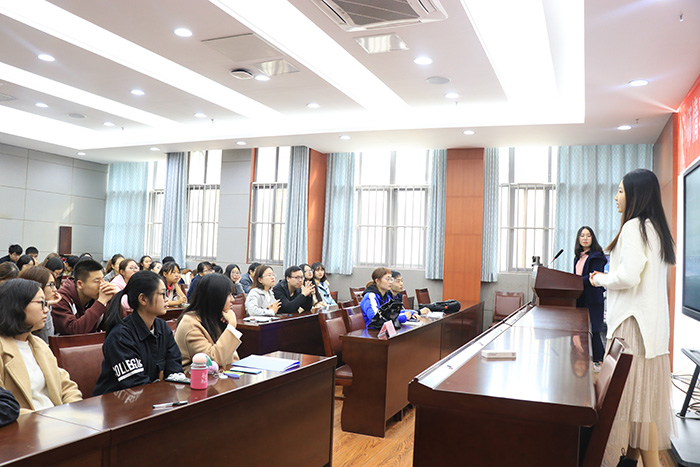 紧接着是南师地科学院媒体运营中心主席兼学生会副主席李佳忆同学介绍了地科学院学生会的正式组成、各个部门职能以及各部门曾经举办过的活动及项目;南师地科学院“心韵”志愿者协会主席兼团总支副书记马榕同学介绍了其团支部曾举办的活动以及院内各个组织的联系。