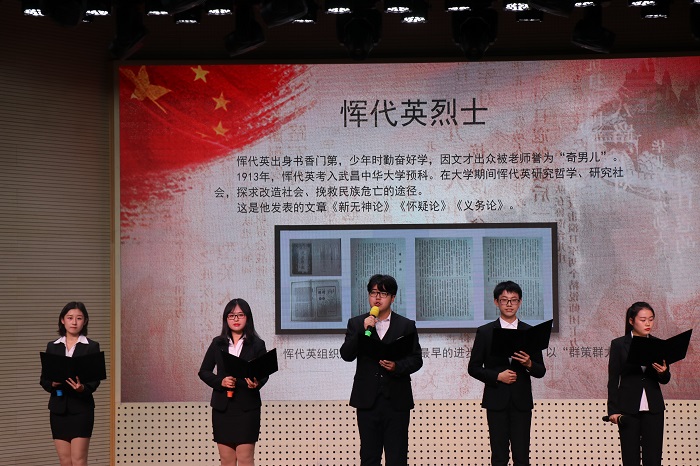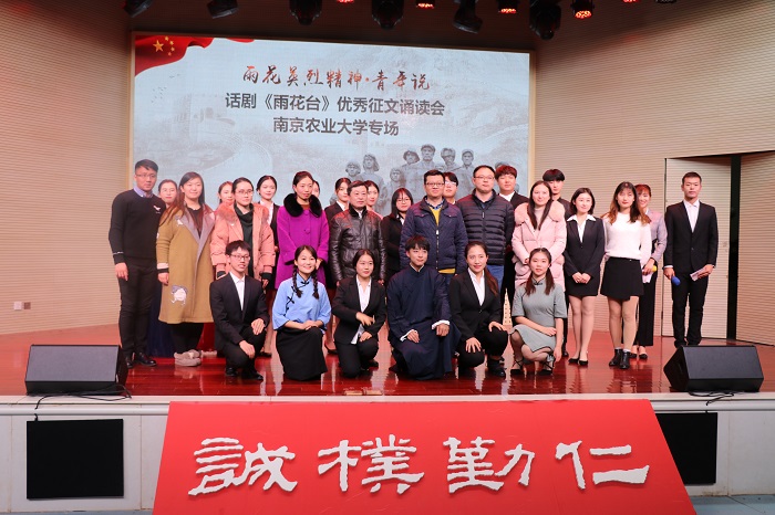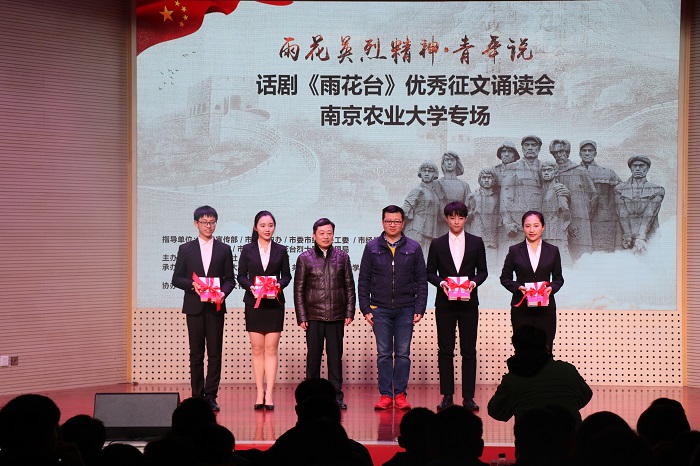 于大学生活动中心举办了“雨花英烈精神·青年说”优秀征文诵读会,晚会由周玲玉、雍乾主持。