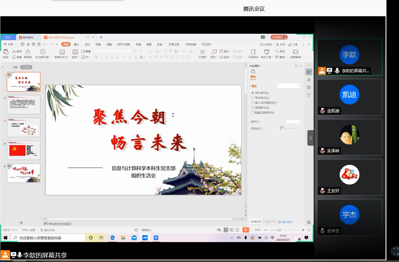 在支部组织生活会上,学生党员们关于“制度自信”、“地摊经济”、“建党99周年”等热点话题开展深入交流讨论。
