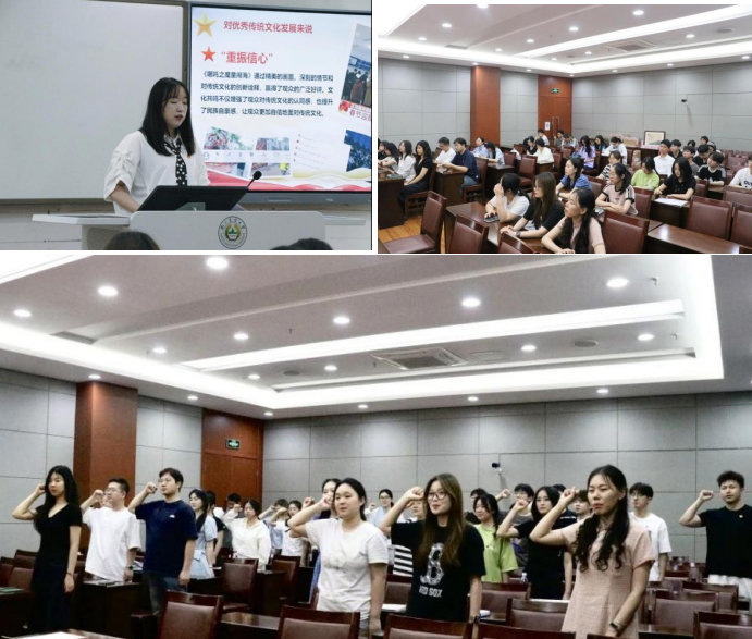 党课最后,许老师号召全体毕业生党员坚守文化自信,传承弘扬中华优秀传统优秀文化,以中央八项规定精神为指引,在新的人生阶段中展现党员的担当与风采。