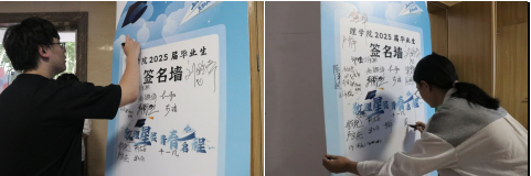 活动现场,同学们纷纷在签名墙上留下了自己的名字,将四年青春寄存于短暂的一笔一画间。