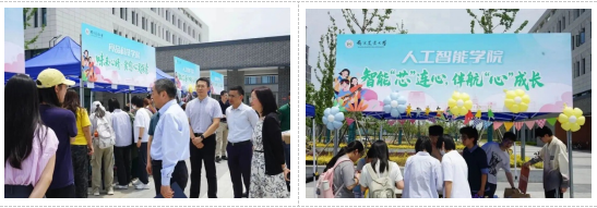 最后,熊富强介绍了本届大学生心理健康教育月活动安排,并宣布开幕式结束。开幕式后,刘营军等领导、老师参观了AI心理海报作品展,并参与到各学院的特色心理健康教育活动中,与同学们热情互动。