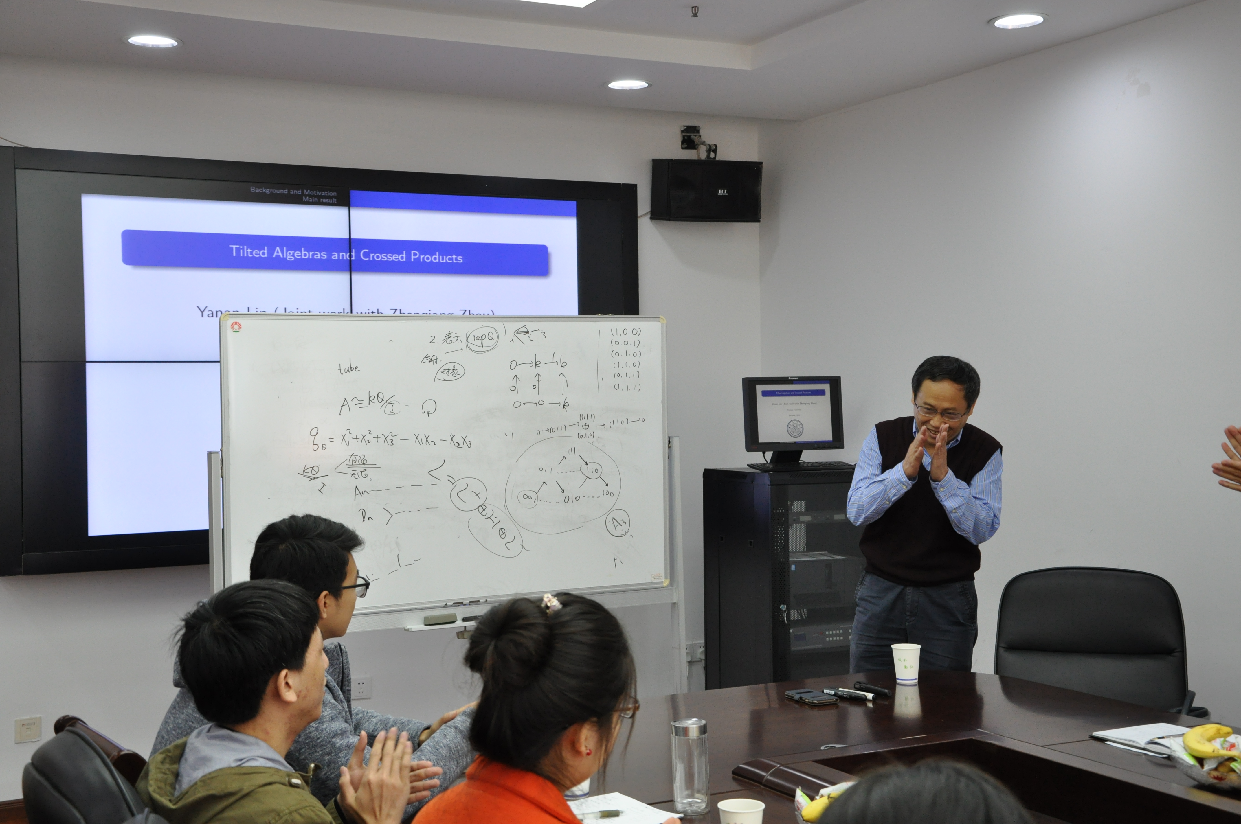 本次专业报告由张良云教授主持。专业报告从简单的Quiver例子出发,由浅入深地向我们展示了有限维结合代数和表示论的相关理论。报告结束后林亚南教授耐心细致地回答了参会师生的问题,现场气氛轻松、活跃。本次学术报告拓展了与会师生的专业视野,取得了良好的专业学习效果。