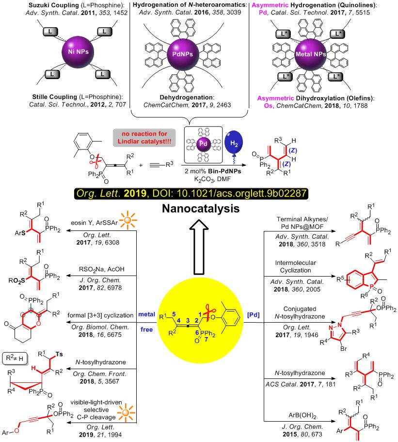 吴磊教授课题组在国际权威刊物Organic Letters(美国化学会-有机通讯,SCI-IF2018: 6.555, organic chemistry ranking: 2/57)在线发表了题为“Cascade Alkynylation and Highly Selective Hydrogenation Catalyzed by Binaphthyl-Palladium Nanoparticles Accessing Phosphinyl (Z)-[3]Dendralenes” 的研究论文。巴黎人赌场