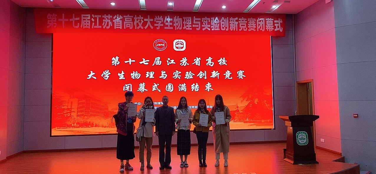 11月22日至24日,由江苏省物理学会、江苏省高校大学生物理与实验创新竞赛组织委员会主办的江苏省高校第十七届大学生物理及实验科技作品创新竞赛决赛在南京师范大学举行。该项赛事是由江苏省教育厅认定的省级重点学科竞赛,是江苏省大学生重要的课外科技活动之一,旨在激发学生锐意进取、不断创新的精神,促进江苏省高校物理及实验教学改革,深入开展创新人才的培养工作,增强学生实践能力和创新能力,提高学生的科学素质。全省共有38所高校参赛,参赛项目392项。我校学子在比赛中表现出色,共4项作品进入决赛,经过激烈的角逐,4项作品均获得了奖项。其中园艺学院李冉君,李金凤,杜薇的“压电陶瓷压电特性的智能测量系统”获得一等奖;食品学院胡骞匀,陈诗蕾,园艺学院林德森的“多重线圈加速型电磁炮”获得二等奖;动医学院姚怡君,许馨木,陈曦的“基于激光测距的智能抓捕器”和工学院张政同学的“Analyzing photonic space-time crystal with FDTD”均获得三等奖。物理系四位教师被评为优秀指导教师。
