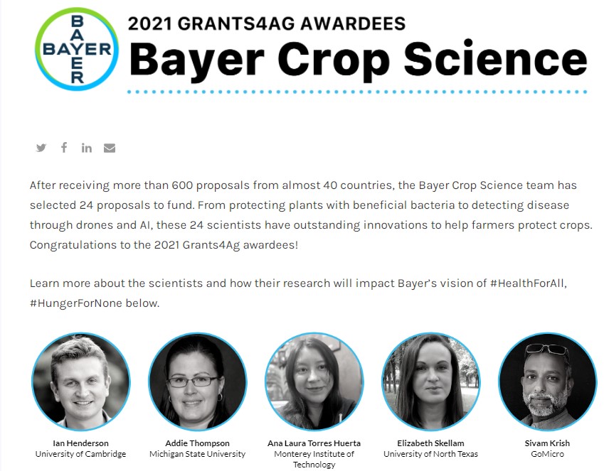 拜耳公司Grants4Ag Award://www.halo.science/blog/bayer-crop-science-2021-grants4ag-awardees/